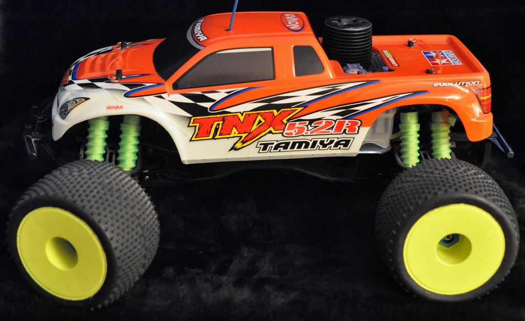 The Tamiya TNX 5.2R has come to new heights since Tamiya first launched the TNX series in mid 2004. The older TNX 3.0 was heavier, had air leaks in the fuel tank, and generally was a lot weaker. Now, the new and improved TNX 5.2R is loaded, at 1/8th scale and from 2-speed transmission to super tough steel drive shafts, this thing will blow your mind. It’s contenting for top spot for 2007′s best gas powered monster truck, with good reason. But what makes this RC monster truck so great? Lets take a look at some of the pros and cons of the TNX 5.2R, although, there’s not very much negatives to say about this mean machine!